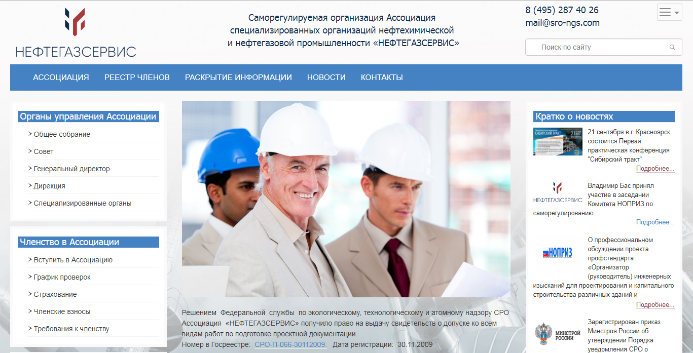 7 августа 2017 года запущен в эксплуатацию новый сайт СРО Ассоциация "НЕФТЕГАЗСЕРВИС"